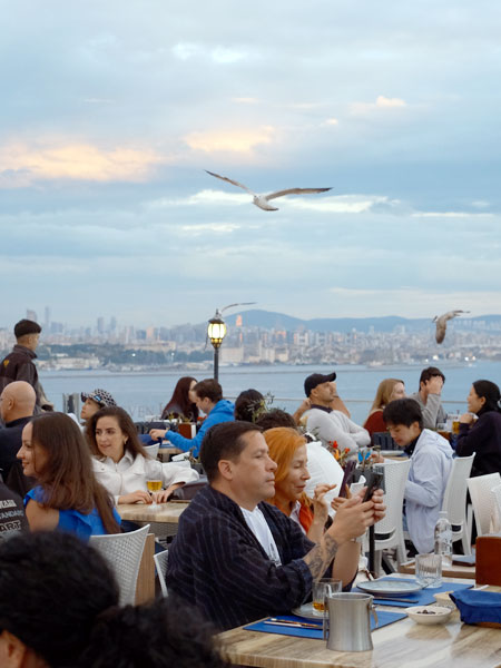 From sunrise to sunset, the view transforms into a living postcard — domes glowing under the morning light, seagulls gliding over the minarets, and the city’s skyline painting a romantic backdrop as evening falls.